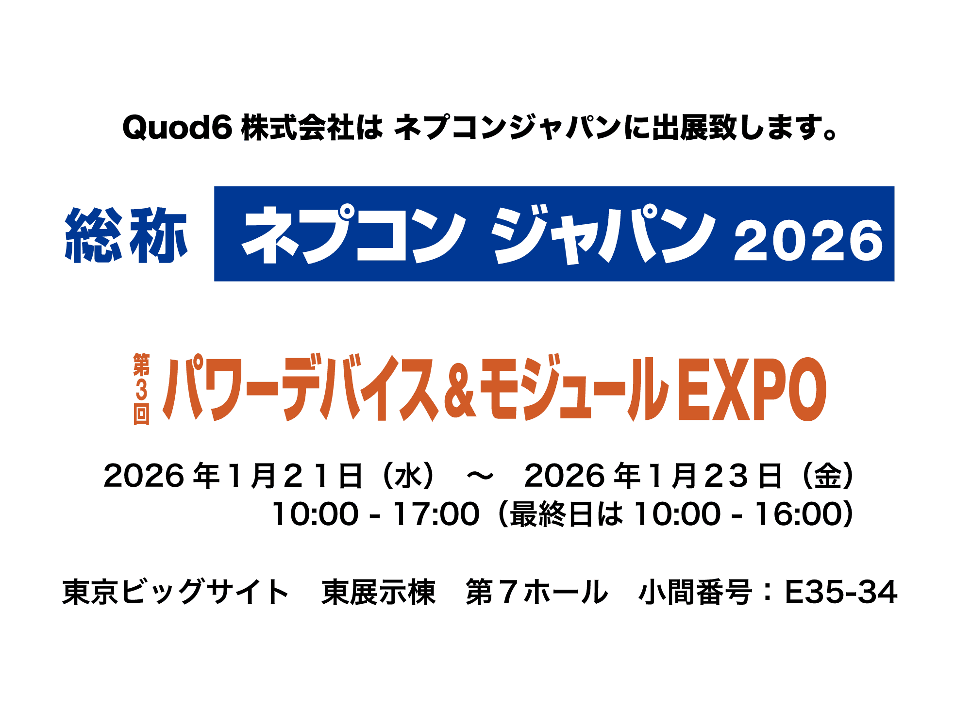 NEPCON Japan 2026 1月21日~23日 東京開催 Quod6とElement Sixが共同でNEPCON Tokyoに出展